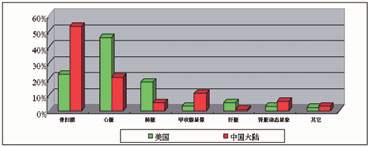每個(gè)國家由于生活習(xí)慣、自然環(huán)境和一些遺傳因素的不同,各種疾病的發(fā)病率也有明顯的區(qū)別。這種區(qū)別就會(huì)導(dǎo)致臨床檢查項(xiàng)目的區(qū)別。由于臨床檢查項(xiàng)目的不同,所以臨床使用的設(shè)備也會(huì)有一定的差異。圖3所示中國大陸和美國臟器核醫(yī)學(xué)檢查比例有明顯區(qū)別。
